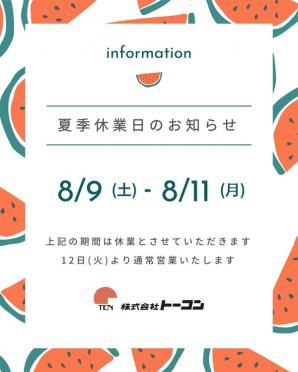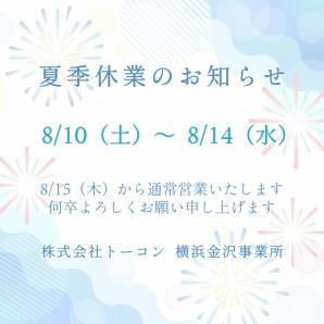 株式会社トーコン横浜金沢事業所では、下記の期間を休業させていただきますので、ご案内いたします。